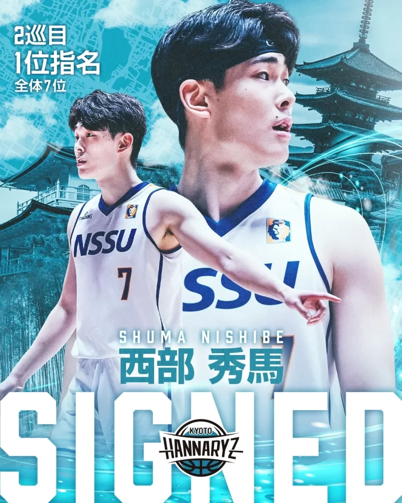 2026年1月29日、Bリーグとして初となる「B.LEAGUE DRAFT 2026」が東京都内で開催された。京都ハンナリーズはこの歴史的な第1回ドラフトで、2巡目1位(全体7位)として西部秀馬を指名した。